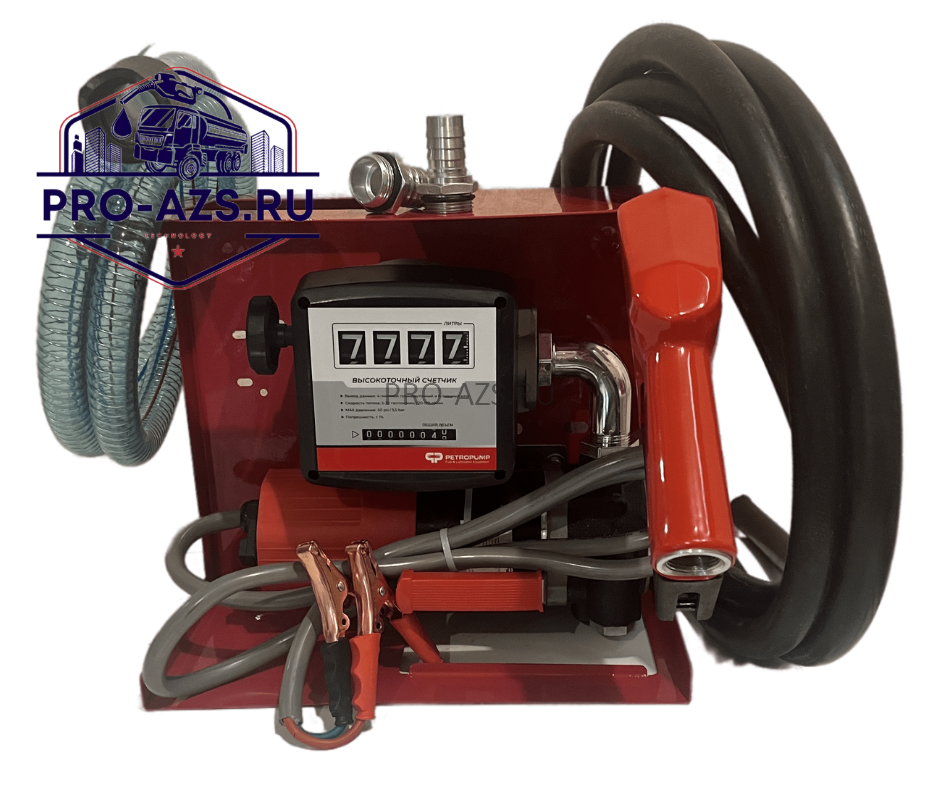 Եվրակուբի հիմքով դիզելային լցակայան՝ 12 Վ սնուցումով, 60 լ/րոպե արտադրողականությամբ, 2–3 % շեղմամբ հաշվիչով, ֆիլտրով և ավտոմատ ատրճանակով։
